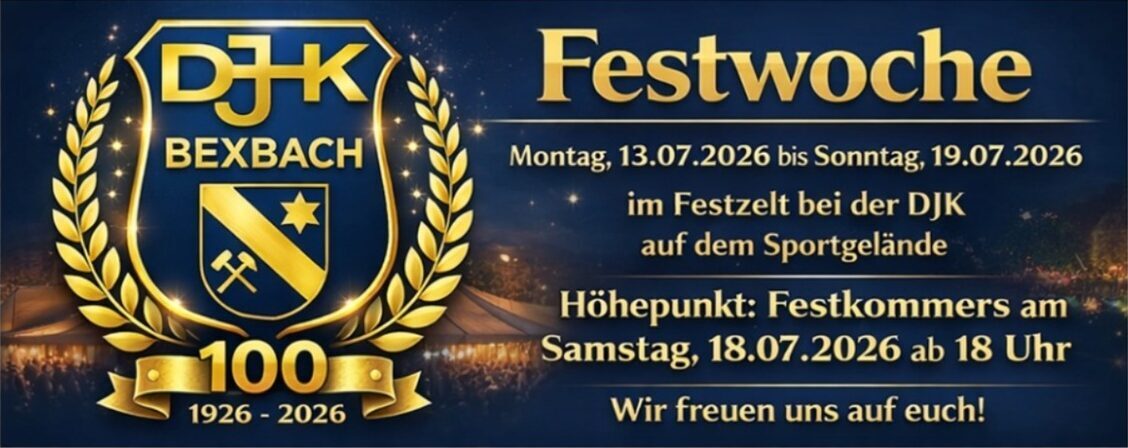 Die DJK Bexbach und der FV Oberbexbach feiern gemeinsam ihr 100-jähriges Bestehen, ein ganz besonderes Jubiläum, das mit einer abwechslungsreichen und stimmungsvollen Festwoche gebührend gefeiert wird. Vom ersten Moment an erwartet die Besucher ein gelungenes Zusammenspiel aus Tradition, Sport, Gemeinschaft und Unterhaltung, ganz im Zeichen zweier Vereine, die seit einem Jahrhundert das gesellschaftliche und sportliche Leben prägen. Den feierlichen Auftakt bildet am Samstag mit dem Festkommers des FV Oberbexbach, der ab 18:00 Uhr im Volkshaus Oberbexbach stattfindet. In festlicher Atmosphäre wird hier auf bewegte Jahrzehnte voller Engagement, Leidenschaft und Vereinsgeist zurückgeblickt und gleichzeitig der Startschuss für eine unvergessliche Jubiläumswoche gegeben. Am Montag, den 13.07.2026, öffnet um 16:00 Uhr (bis ca.…